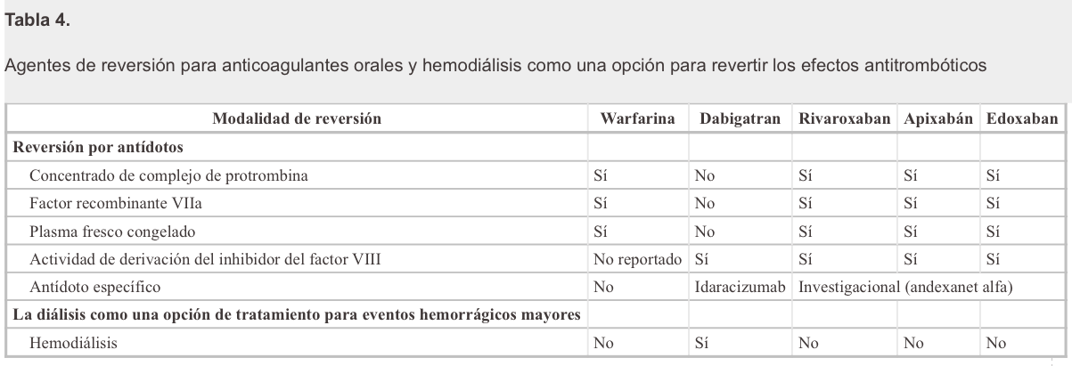 Los efectos antitrombóticos de la warfarina se revierten con dosis bajas de vitamina K. Cuando se administran dosis farmacológicas de vitamina K (fitonadiona 2.5-5 mg), la vitamina K reducida se genera por un mecanismo que evita la epóxido reductasa (a través de la vitamina K reductasa) que es menos sensible a la warfarina. Las dosis grandes de vitamina K (10 mg) pueden provocar resistencia a la warfarina durante> 1 semana. Las pautas del American College of Chest Physicians recomiendan, para los INR≥9 y ningún sangrado, una sola dosis oral de 2.5 a 5 mg para reducir el INR en 1-2 días. Para hemorragias graves, independientemente del valor de INR, se administran 10 mg por vía parenteral y se complementan con plasma fresco congelado, concentrado de complejo de protrombina o factor VIIa recombinante. Estas medidas se repiten cada 12 horas si el INR permanece elevado. Debido a que los efectos hemorrágicos pueden prolongarse en pacientes con ERC y pacientes con ERT para un valor de INR dado en comparación con individuos sin CKD, los médicos deben considerar la terapia repetida para asegurar una reversión adecuada.