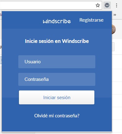 3. Ahora tendrán un icono en forma de «W» en la esquina superior derecha. Click e ingresar con su cuenta de Windscribe creado anteriormente.