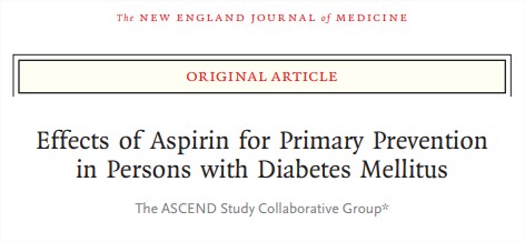 El uso de aspirina previno eventos vasculares graves en personas que tenían diabetes y ninguna enfermedad cardiovascular evidente al ingresar al estudio, pero también causó eventos hemorrágicos mayores. Los beneficios absolutos se contrarrestaron en gran medida por el riesgo de hemorragia. (Financiado por la Fundación Británica del Corazón y otros; número de ensayos controlados actuales de ASCEND, ISRCTN60635500 ; número de ClinicalTrials.gov, NCT00135226 ).