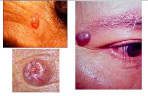 Es la más frecuente de las neoplasias cutáneas malignas. Suele localizarse en la cara. Crecimiento lento y pocas veces hace metástasis. Se inicia como un nódulo un tanto translúcido que se entiende dejando u centro deprimido.