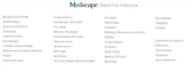 La página lo puedes configurar en 5 idiomas, recomiendo el idioma Ingles, donde hay más información. Una vez dentro lo puedes escoger como portada la distintas especialidades y temas de interés (Incluye Estudiantes de medicina, residentes, farmacéuticos, enfermeras, hoy en medscape)