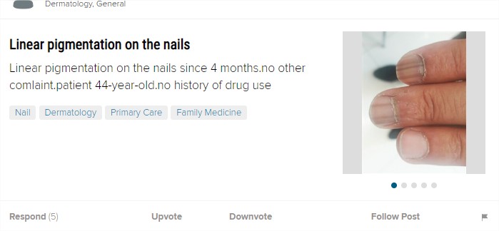 La sección de CME y educación, ofrece vídeos educativos y preguntas tipo test para conseguir créditos de educación médica continua. Una sección que me parece muy interesante es la de consulta, aquí los médicos pueden realizar y responder preguntas, similar a la aplicación Figure 1. Y para terminar está la sección vídeos donde los temas son variados, desde vídeos 3D, perspectivas, CME, procedimientos