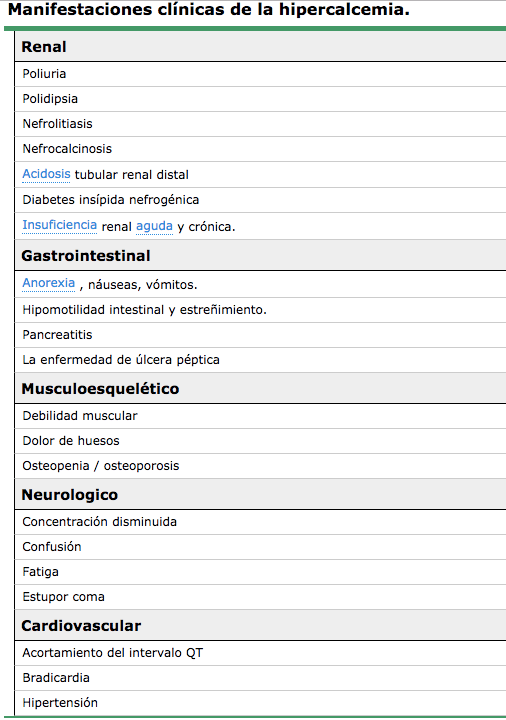 En pacientes con hipercalcemia grave (calcio> 14 mg / dL [3.5 mmol / L]), a menudo hay una progresión de estos síntomas. ( debilidad, dificultad para concentrarse, confusión, estupor y coma).