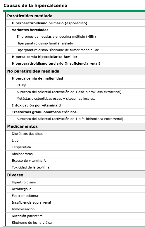 Entre todas las causas de hipercalcemia, el hiperparatiroidismo primario y la malignidad son las más comunes, y representan más del 90% de los casos.