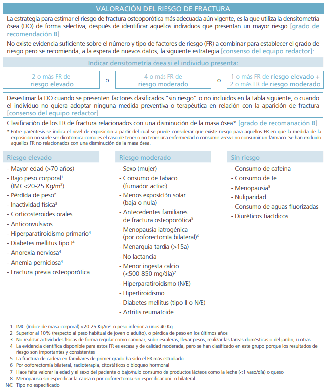 Recordar la baja utilidad predictiva individual de la técnica, lo que determina que aunque una disminución de la masa ósea diagnosticada por DMO aumenta el riesgo de fractura, no puede determinarse con precisión que´ personas presentarán fracturas en el futuro y cuáles no.