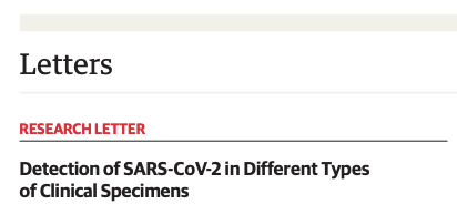 En este estudio, se detectó SARS-CoV-2 en muestras de múltiples sitios de 205 pacientes con COVID-19, y las muestras del tracto respiratorio inferior con mayor frecuencia dieron positivo para el virus. Es importante destacar que el virus vivo se detectó en las heces, lo que implica que el SARS-CoV-2 puede transmitirse por la ruta fecal. Un pequeño porcentaje de muestras de sangre tuvo resultados positivos en la prueba de PCR, lo que sugiere que la infección a veces puede ser sistémica. La transmisión del virus por vías respiratorias y extrarespiratorias puede ayudar a explicar la rápida propagación de la enfermedad. Además, la prueba de muestras de múltiples sitios puede mejorar la sensibilidad y reducir los resultados de prueba falsos negativos. Dos estudios más pequeños informaron la presencia de SARS-CoV-2 en hisopos anales u orales y sangre de 16 pacientes en la provincia de Hubei, y carga viral en hisopos de garganta y esputo de 17 casos confirmados.