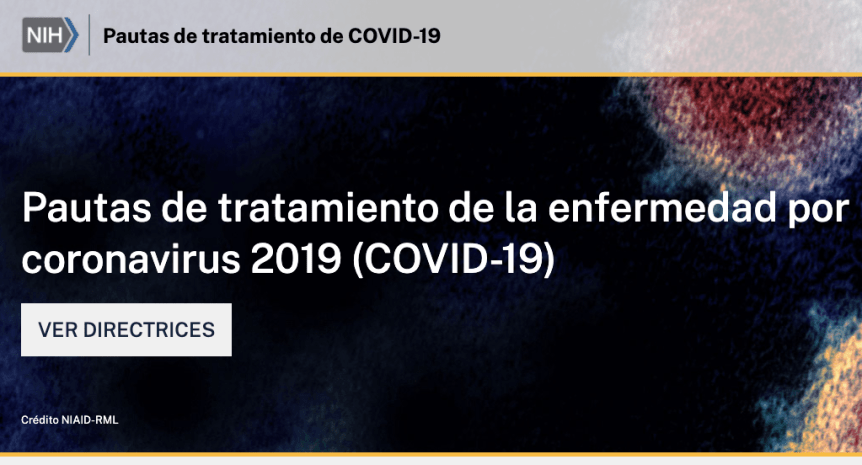 Un panel de médicos, estadísticos y otros expertos de EE. UU. Ha desarrollado pautas de tratamiento para la enfermedad por coronavirus 2019 (COVID-19). Estas pautas, destinadas a proveedores de atención médica, se basan en datos publicados y preliminares y en la experiencia clínica de los panelistas, muchos de los cuales son médicos de primera línea que atienden a pacientes durante la pandemia en rápida evolución. Las pautas se publican en línea ( covid19treatmentguidelines.nih.gov ) y se actualizarán a menudo a medida que se publiquen nuevos datos en literatura científica revisada por pares y surja otra información autorizada.