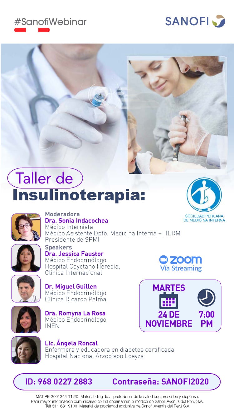 Sanofi organiza el evento científico «Taller de Insulinoterapia» , junto a la Dra. Sonia Indacochea, Dra. Jessica Faustor, Dr. Miguel Guillen, Dra. Romyna la Rosa y Lic. Ángela Roncal.
