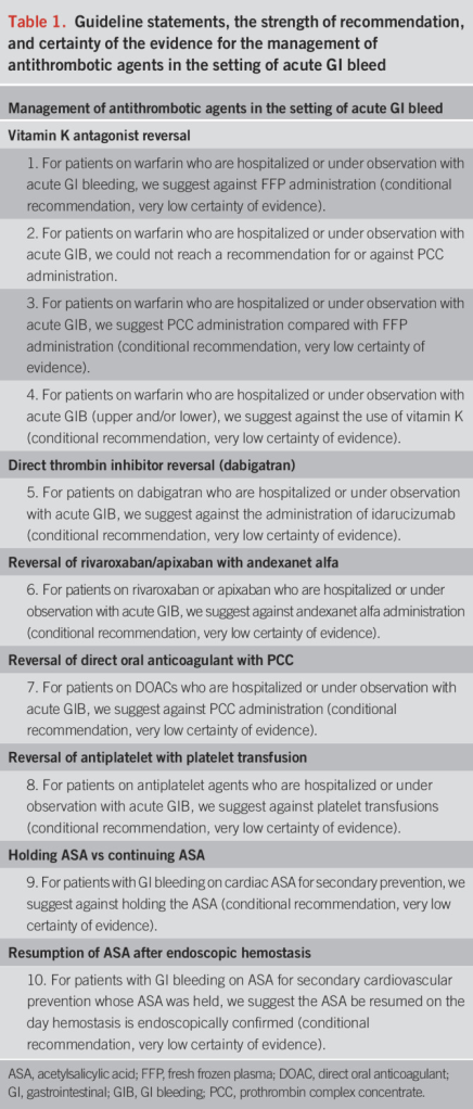Un comentario sobre “Manejo de anticoagulantes y antiplaquetarios durante el sangrado gastrointestinal agudo y el período periendoscópico