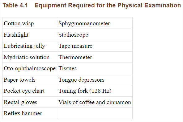 El dispositivo más útil para la realización óptima del examen físico es una mente inquisitiva y sensible. El siguiente más útil es el dominio de las técnicas de observación, palpación, percusión y auscultación. Menos importantes son las herramientas necesarias para el examen.