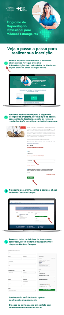La Escuela de Educación Permanente del Hospital de Clínicas de la Facultad de Medicina de la Universidad de São Paulo (EEP HCFMUSP) ofrece el Programa de Formación Profesional para Médicos Extranjeros (PCPME) desde 2008. El objetivo es promover el desarrollo profesional de alta calidad con amplia experiencia práctica en diversas especialidades médicas.