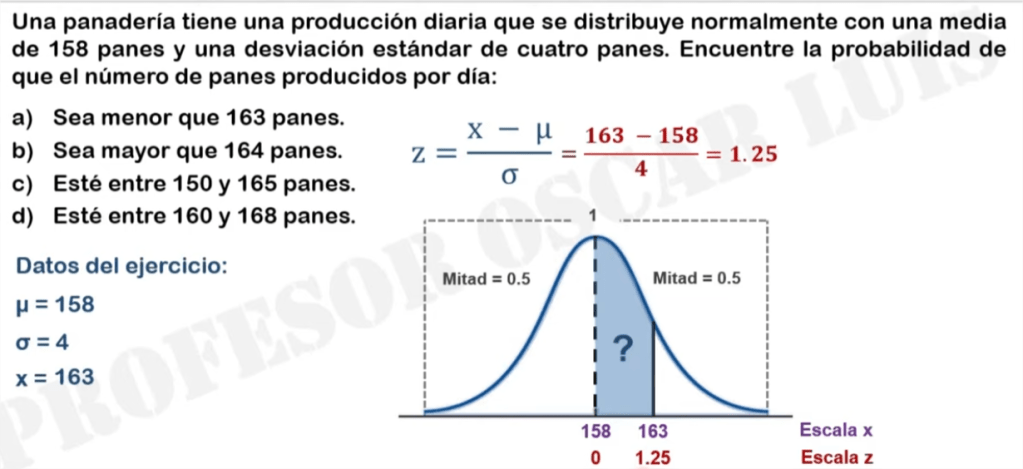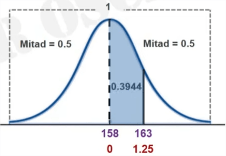 Aca debemos de tener en cuenta que menor a 163 panes, esta el valor de 0.5 que corresponde a la mitad de la curva, y se tiene que sumar 0.3944.