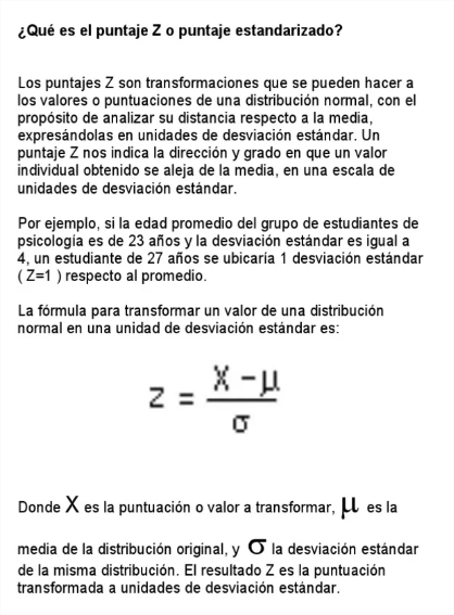 Recordar: El denominado valor Z es una de las medidas de posición relativa