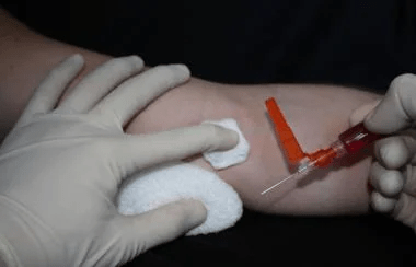 Retiro de la aguja del sitio de punción de la arteria braquial y aplicación de presión local para la hemostasia.