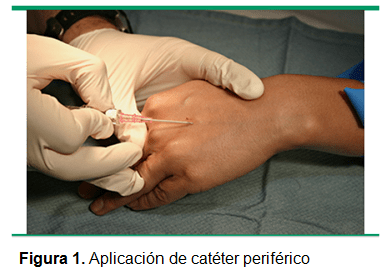 El acceso venoso periférico se refiere a un catéter vascular que termina en una vena periférica en una extremidad, el cuero cabelludo o el tronco. Las indicaciones pueden incluir terapia con líquidos intravenosos , toma de muestras de sangre y administración de medicamentos. Las contraindicaciones incluyen infección, compromiso tisular y trombosis . Es importante determinar el mejor sitio para la inserción, seleccionar el tamaño correcto del catéter y asegurarse de que todo el equipo necesario esté al lado de la cama antes de realizar el procedimiento. La infiltración intravenosa y la extravasación intravenosa son complicaciones comunes.