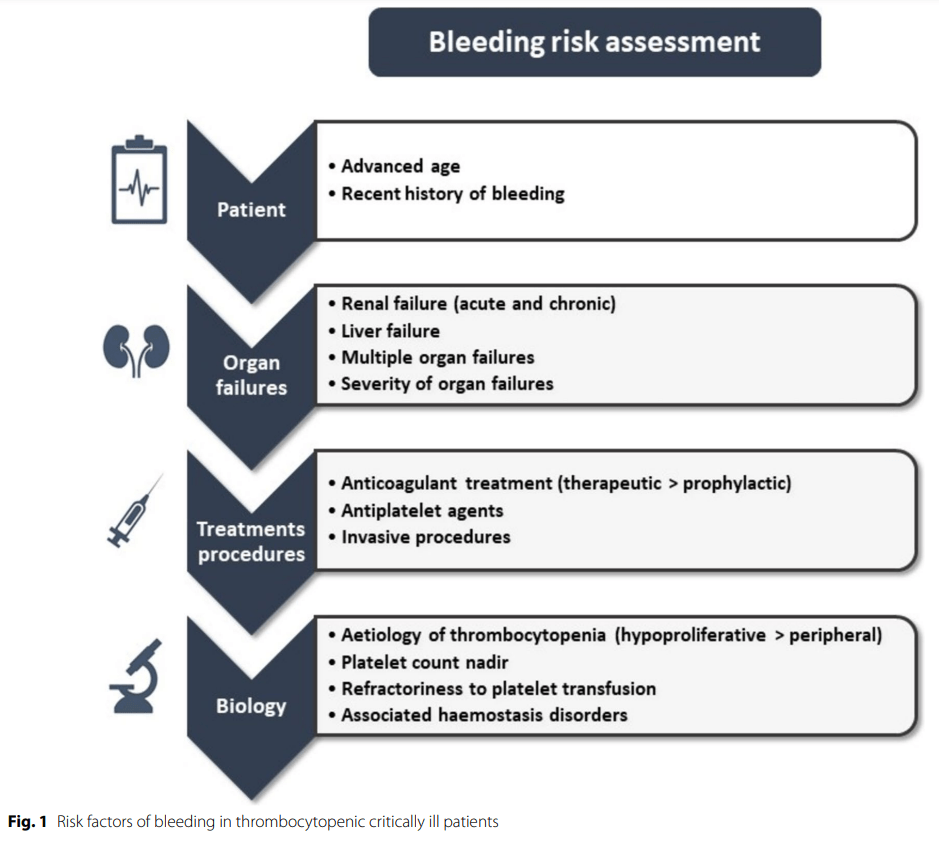 El riesgo de sangrado en pacientes con trombocitopenia no depende solo del recuento plaquetario, sino también de otros factores como: