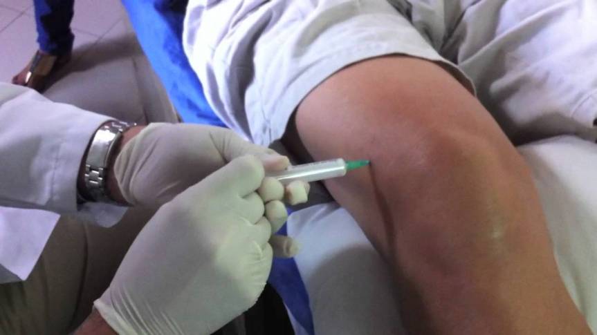 5. Si se planea una inyección intraarticular, el agente deseado se inyecta lentamente en el espacio sinovial.