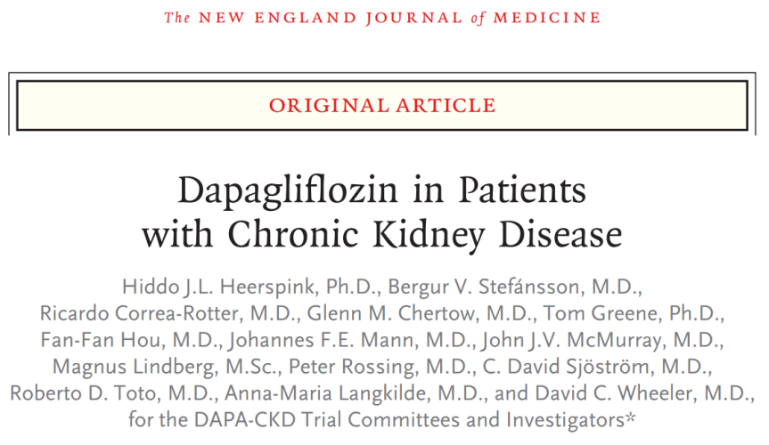 Chronic Kidney Disease (CKD) is one of the leading causes of morbidity and mortality worldwide. Traditionally, treatment has focused on renin-angiotensin system inhibitors (ACEi/ARBs), but new strategies have emerged to slow its progression. The DAPA-CKD trial evaluated whether dapagliflozin, an SGLT2 inhibitor, could improve renal and cardiovascular outcomes in patients with CKD, both with and without type 2 diabetes.