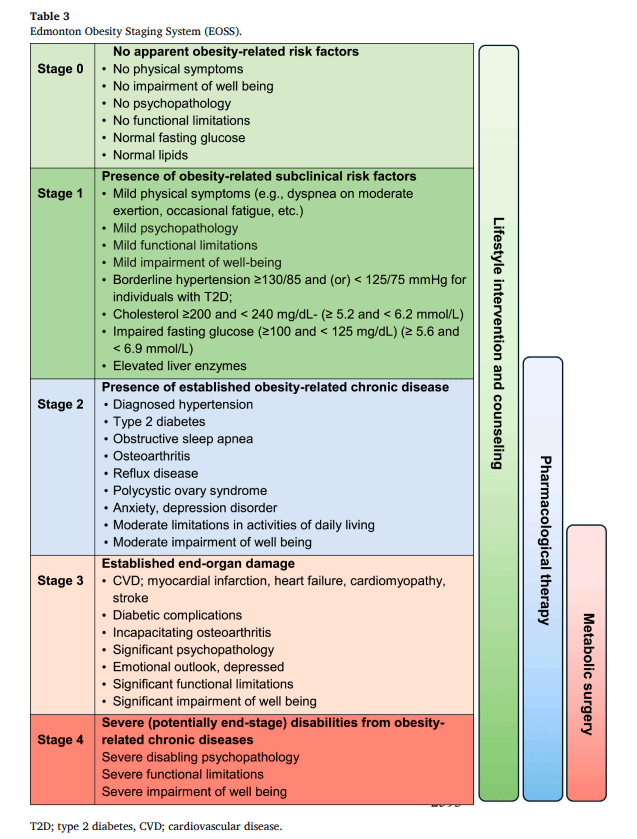 - Aplicación del Edmonton Obesity Staging System (EOSS).