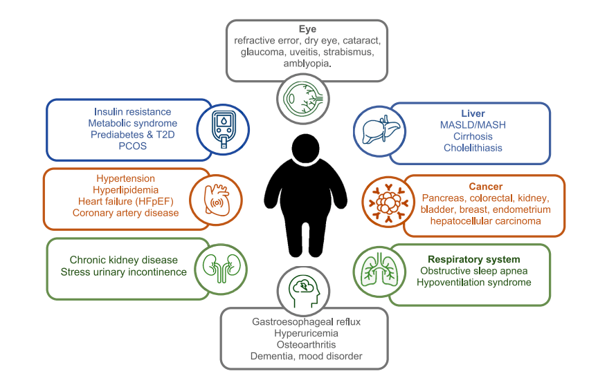 La obesidad es una de las condiciones crónicas más prevalentes y complejas del siglo XXI. Se estima que más de mil millones de personas la padecen en todo el mundo, incluyendo niños, adolescentes y adultos. Sin embargo, su impacto va mucho más allá del peso corporal. Se ha convertido en el eje de múltiples enfermedades crónicas no transmisibles: diabetes mellitus tipo 2, hipertensión arterial, enfermedades cardiovasculares, trastornos hepáticos, renales, psiquiátricos, musculoesqueléticos, respiratorios y hasta oncológicos.