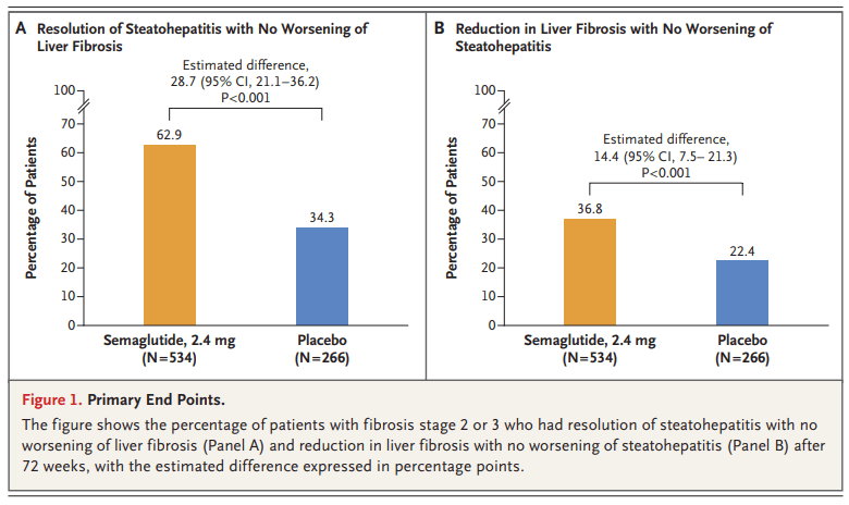 | ✅ Resolución de MASH sin empeorar fibrosis | 62.9% | 34.3% | +28.7% | < 0.001 |