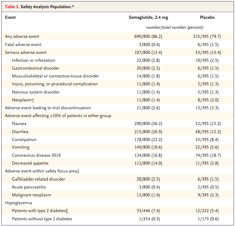 | Resultado | Semaglutida 2.4 mg | Placebo | Diferencia absoluta | p-valor |