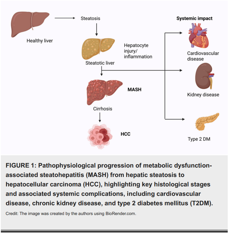 La enfermedad por hígado graso no alcohólico (NAFLD), recientemente redefinida como enfermedad por esteatosis hepática asociada a disfunción metabólica (MASLD), constituye hoy la enfermedad hepática crónica más prevalente a nivel mundial, afectando a un 25-30% de la población. Su estrecha relación con la obesidad, diabetes tipo 2, dislipidemia e hipertensión arterial refleja su carácter multisistémico y cardiometabólico.