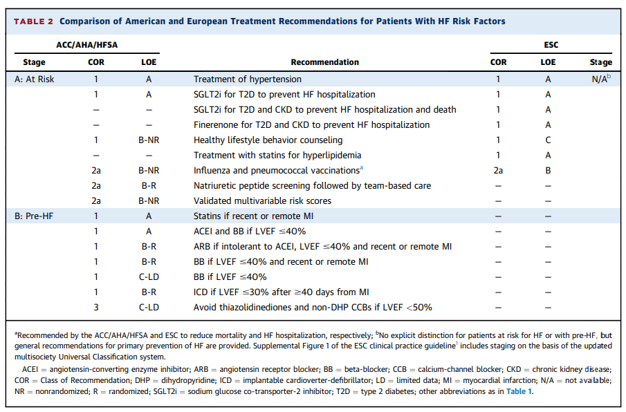 - Scores de riesgo: la guía americana promueve el uso de modelos multivariados para estimar riesgo de insuficiencia cardíaca, algo que no se enfatiza en Europa.