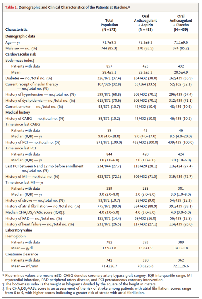 Sin embargo, las combinaciones de anticoagulantes y antiagregantes han demostrado aumentar significativamente el riesgo de hemorragia. Lo que faltaba era un ensayo doble ciego, controlado con placebo, específicamente en pacientes con SCC de alto riesgo y stent previo, para determinar si realmente la aspirina aporta beneficio adicional.