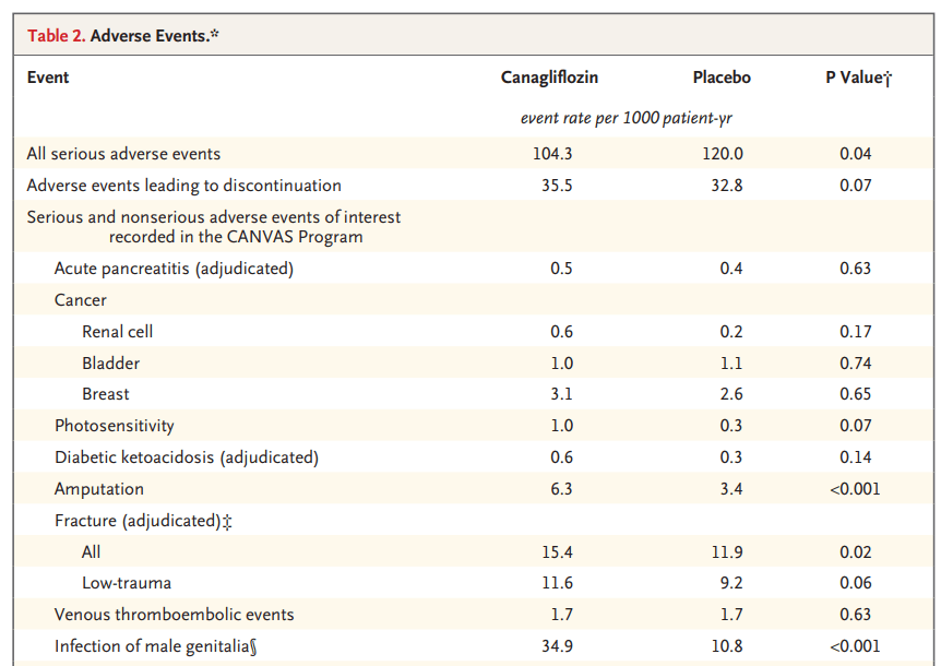 👉 La canagliflozina aumenta el riesgo de amputación en 2.9 casos adicionales por cada 1000 paciente-años