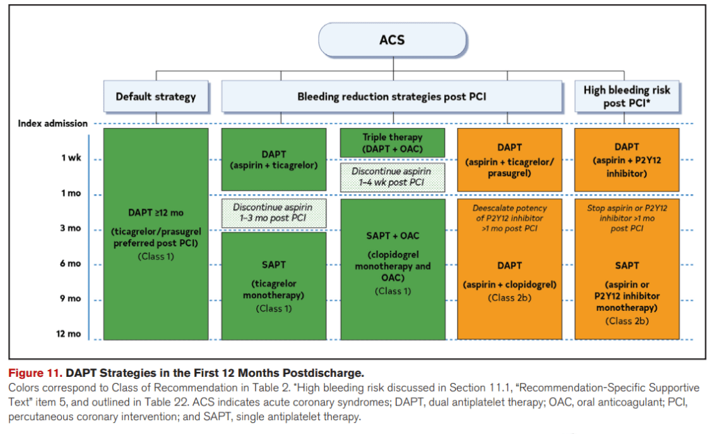- DAPT ≥1 año en la mayoría de pacientes con ACS.