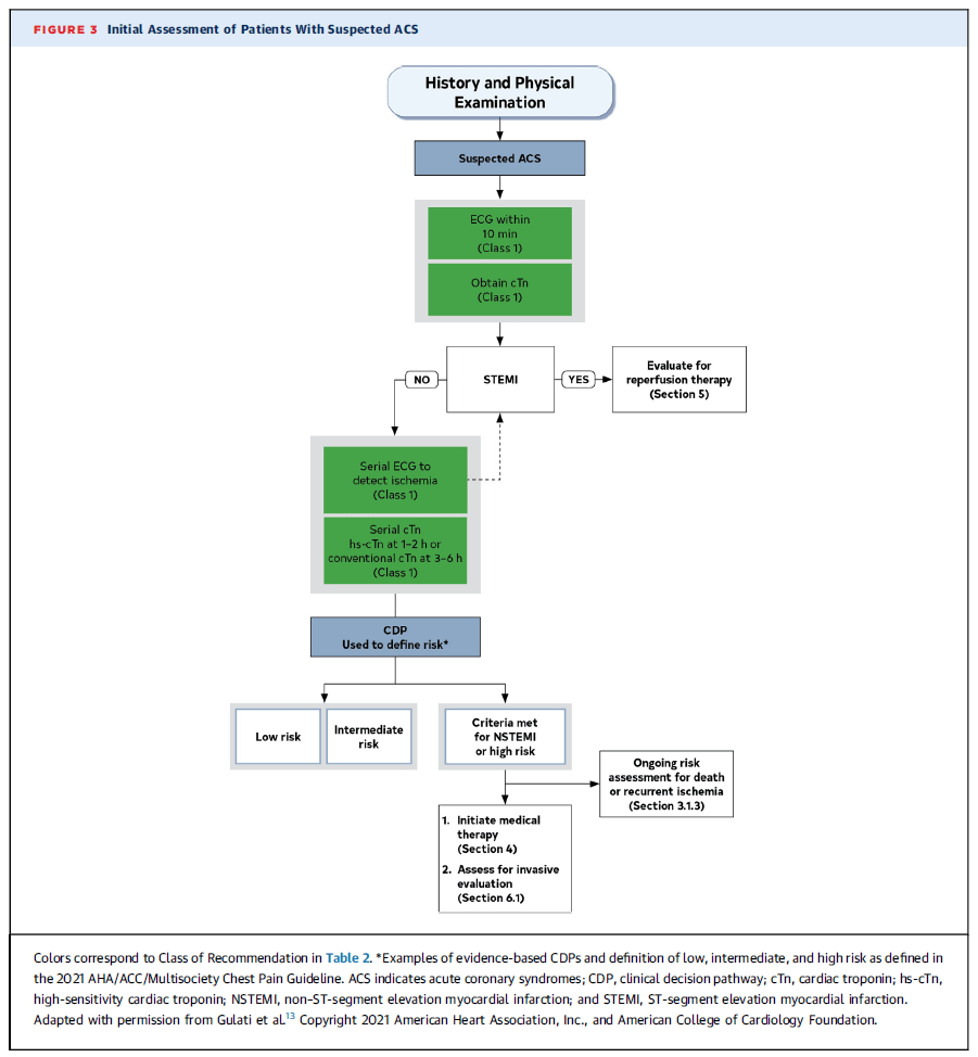 - Se inicia con la evaluación clínica de un paciente con sospecha de síndrome coronario agudo (ACS).
