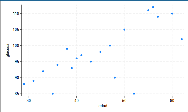stataCopiar código* Correlación no paramétrica entre glucosa y edad