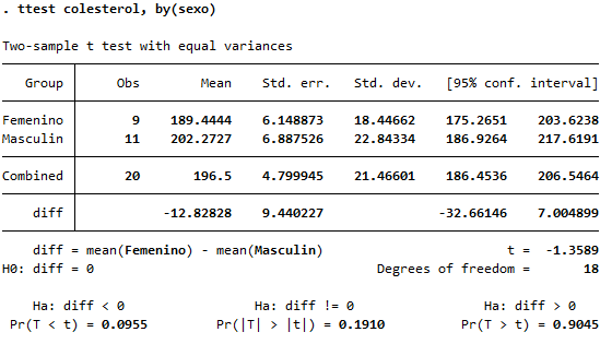 - p-valor (Pr(|T| > |t|)) = 0.1910 → ❌ No significativo