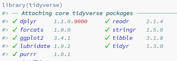 Para verificar qué paquetes del Tidyverse están instalados y cargados: