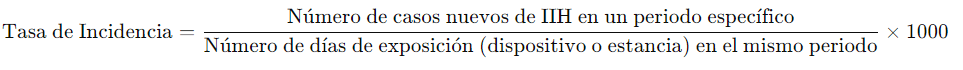 - Tasa: Tasa de incidencia de IIH por 1000 días de estancia en UCI.