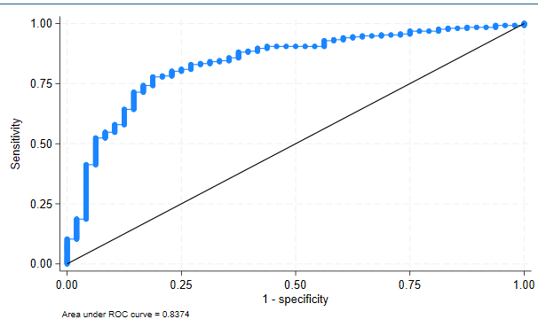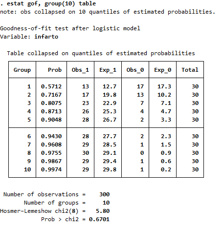 - Hosmer-Lemeshow chi2(8) = 5.80